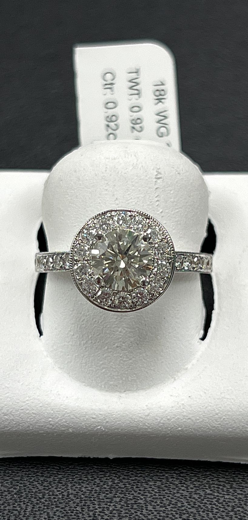 0.92 CT Rings-Halo, Diamond 18k White Gold GIA-205383