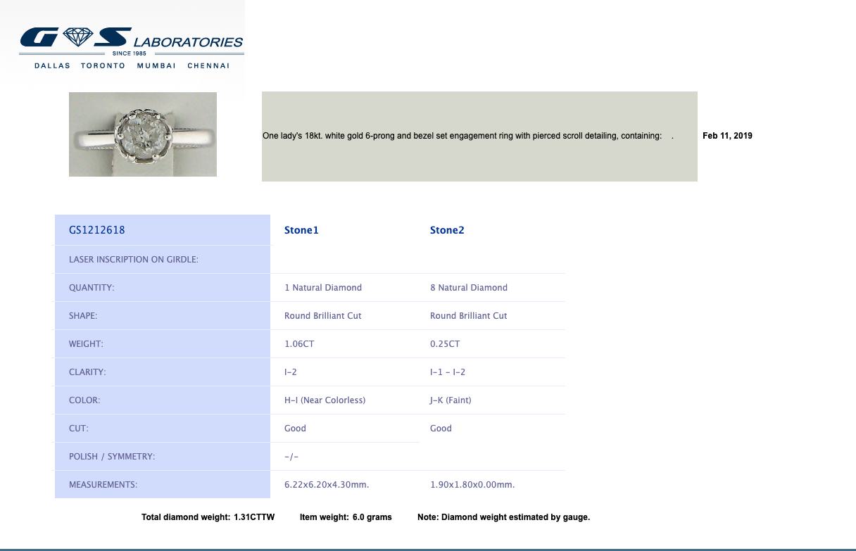 | Carat Total Weight (avg ct. tw.) : | 1.31 ct |
