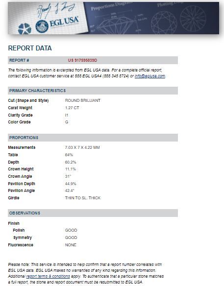 | Details: | 1.27 ct Round prong |