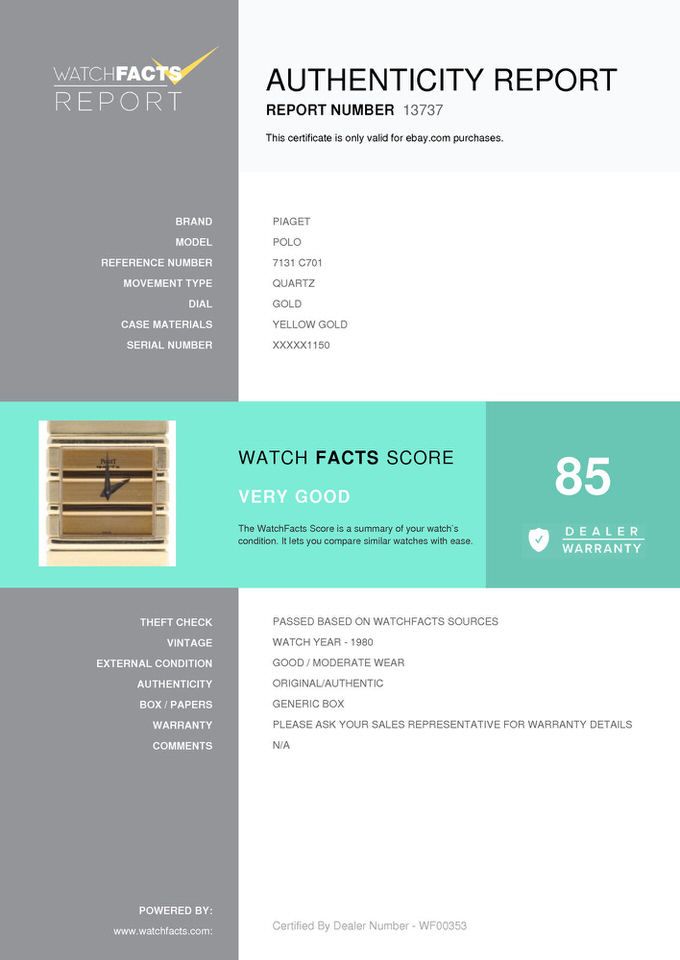 Piaget Polo Yellow-gold 7131 C701 Gold Dial Mens 25-mm Quartz Sapphire crystal.