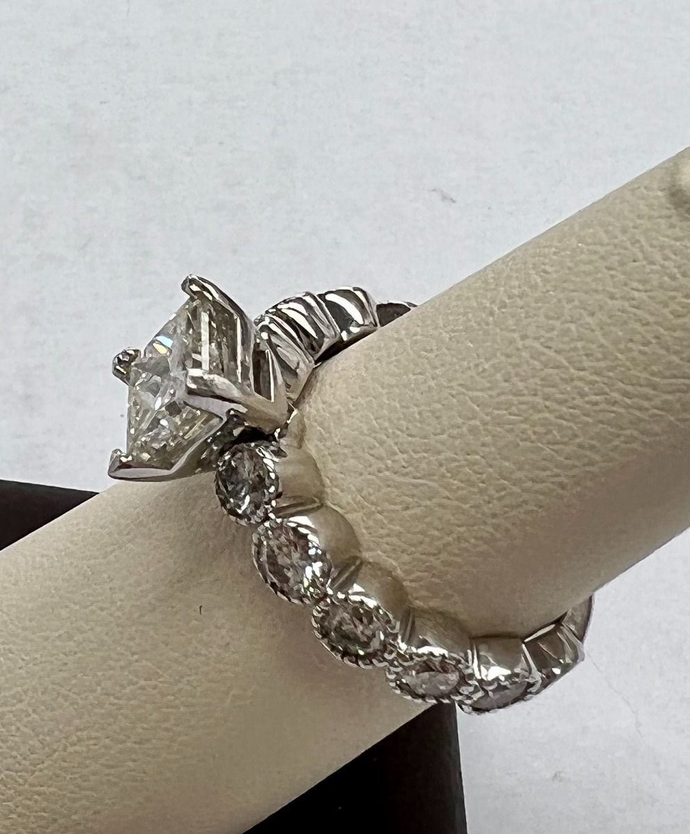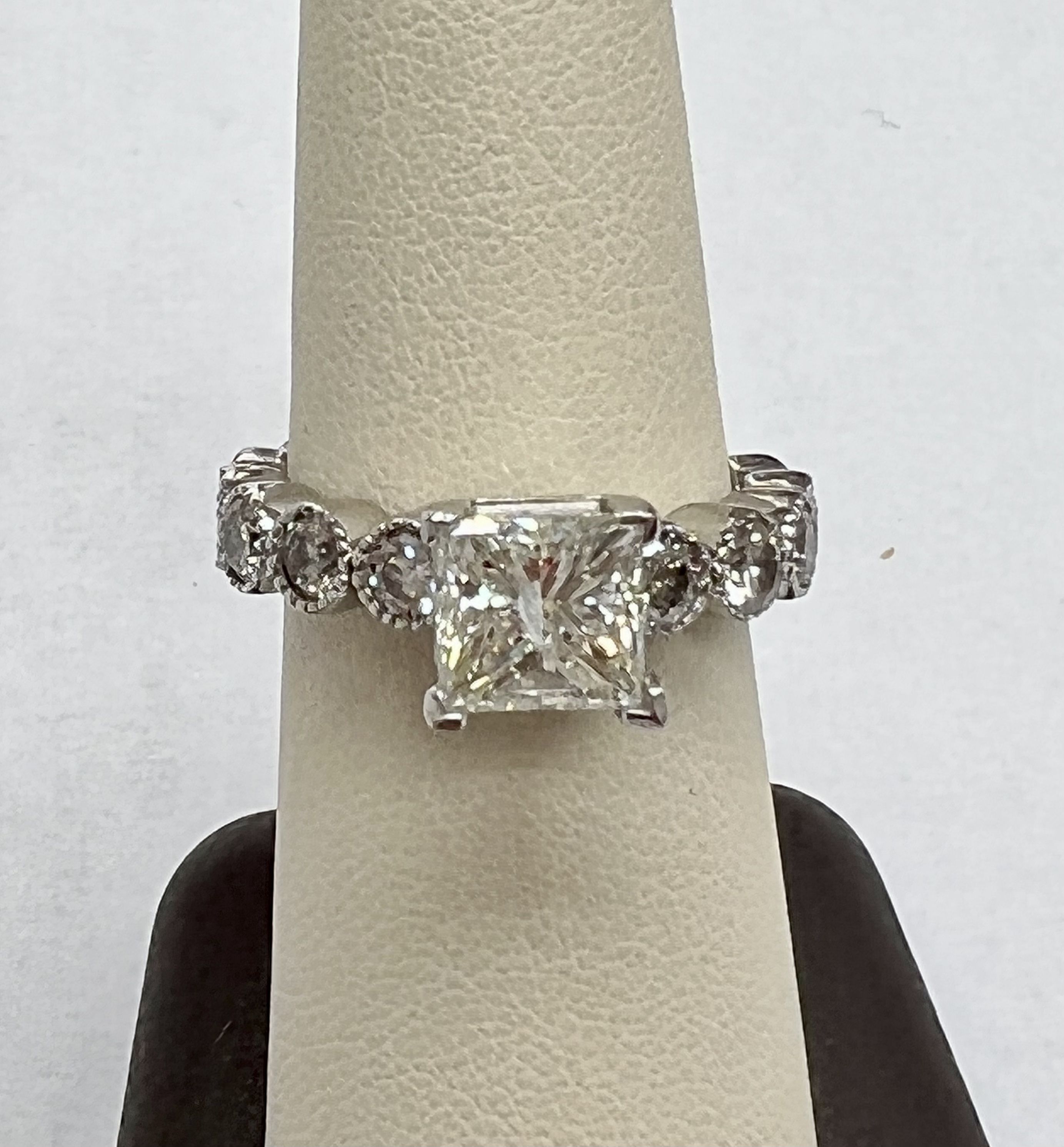 2.40cts Princess and 0.15cts Round Diamond side stone Ring in 14K white Gold