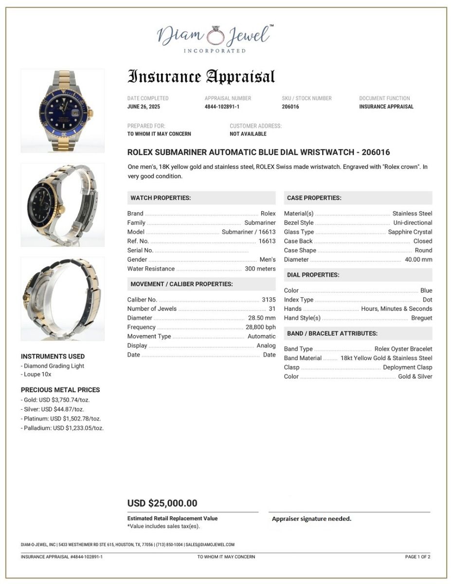 | Additional Information: | Comes with a watch presentation box, 1-year warranty, and an appraisal report for insurance & authenticity. |