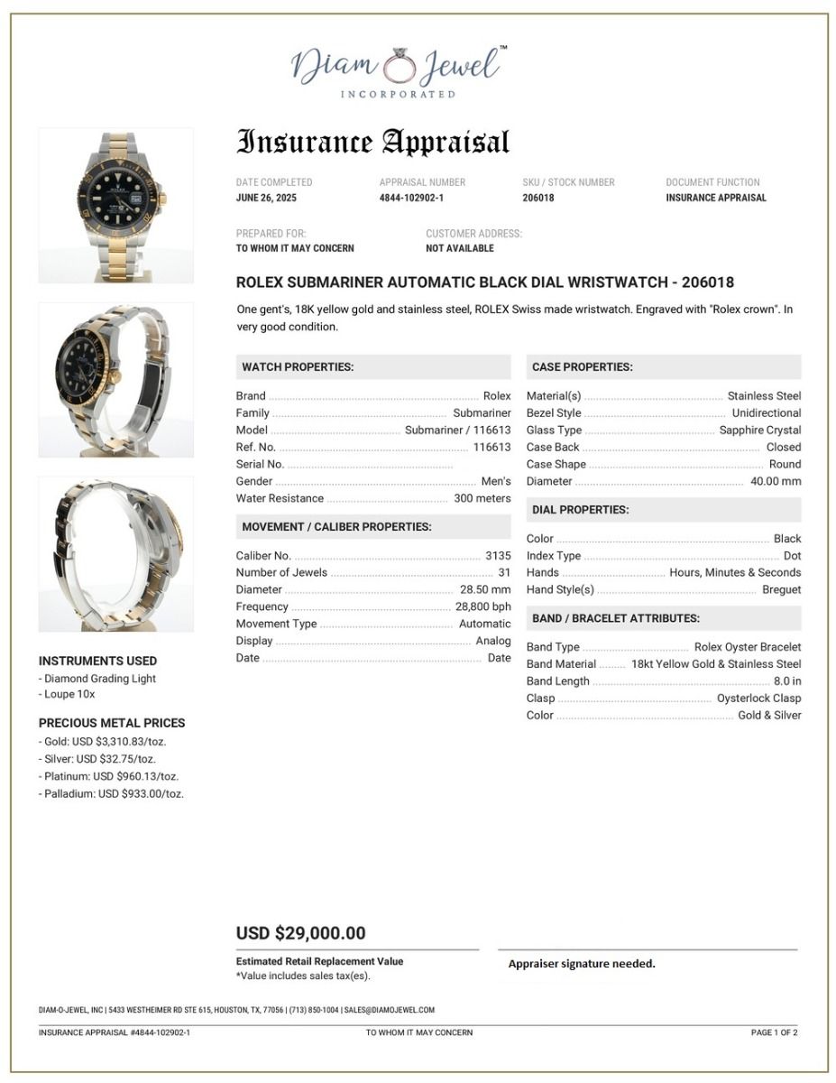 | Additional Information: | Comes with a watch presentation box, 1-year warranty, and an appraisal report for insurance & authenticity. |