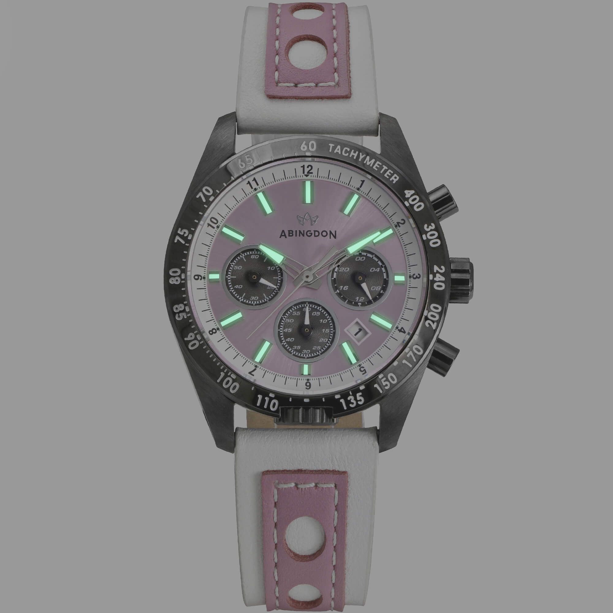Abingdon Women Jordan Podium Pink Tachy Watch with Camel Leather Strap