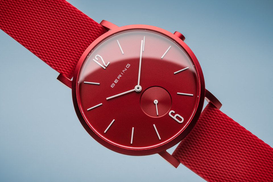 BERING Time True Aurora Collection Resin 16940-599 Red Dial Unisex-adult 40-mm Quartz Sapphire crystal. Designed in Denmark Wrist Watch