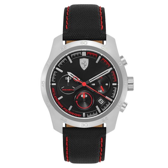 Ferrari Men's PRIMATO Stainless Steel Quartz Watch with Nylon Strap, Black, 22 (Model: 830444)