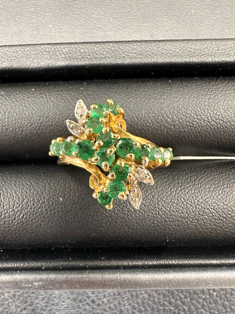 | Details: | Gemstone Emerald and Diamond Cocktail Ring in 14k Yellow Gold in Yellow Gold by Amijag |