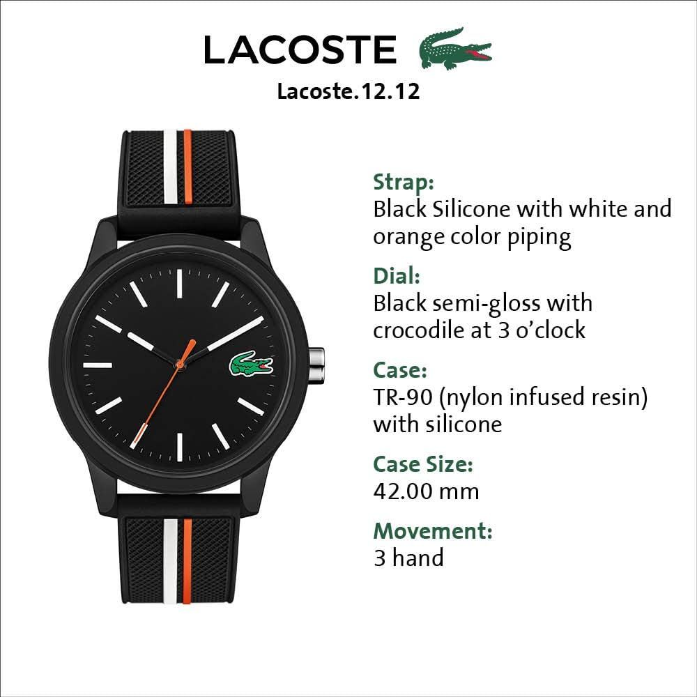 Lacoste Lacoste.12.12 Men's Quartz Plastic and Silicone Strap Sporty Watch, Color: Multiple Color (Model: 2011071)