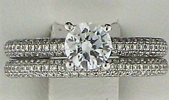 One CZ Round stone & 0.82cts Round Diamond 18k WG Rings