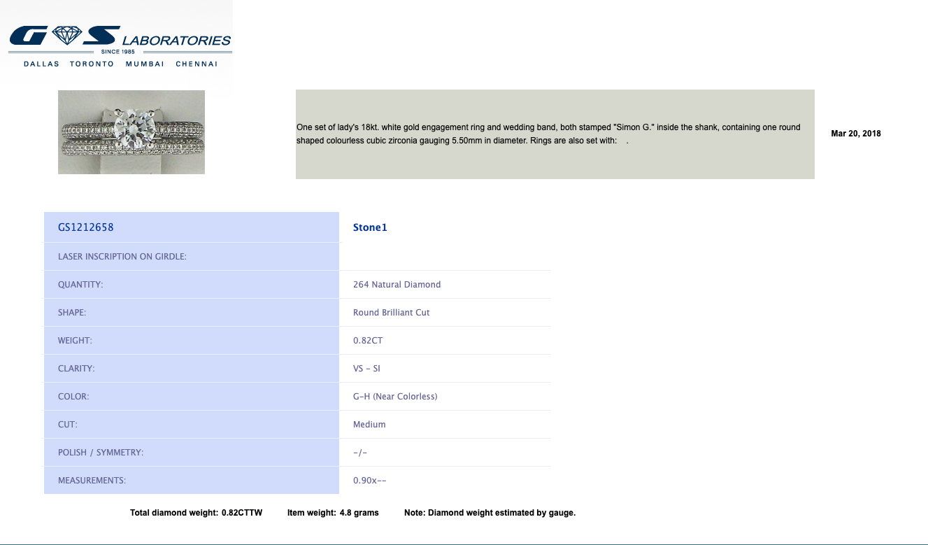 | Carat Total Weight (avg ct. tw.) : | 0.82 ct |