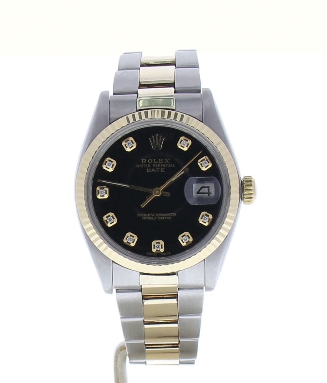 Rolex Date 34 Stainless-steel 1500 Black Dial Womens 34-mm Automatic self-wind Sapphire crystal. Swiss Made WristWatch