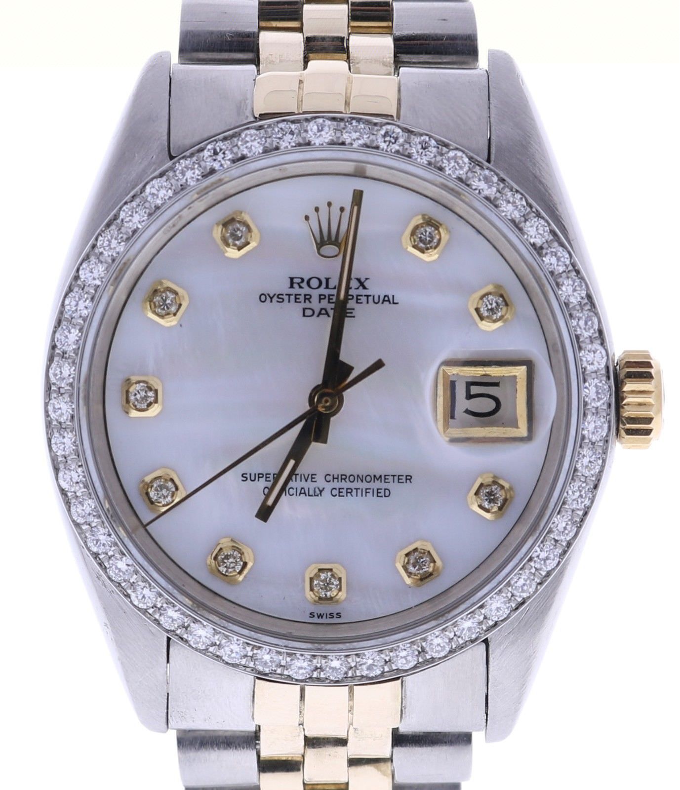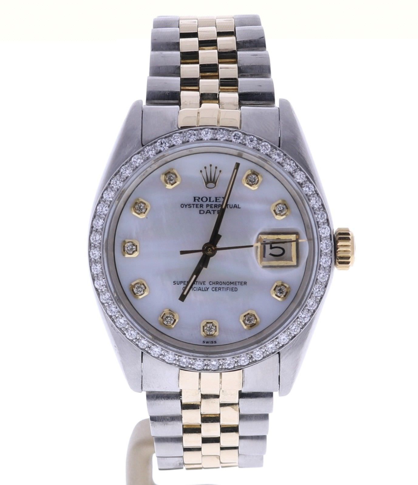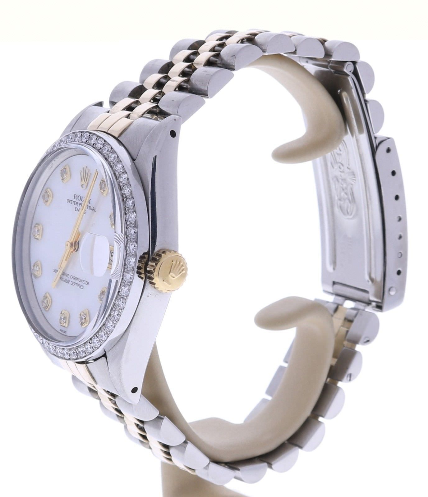 Rolex Date 34 Stainless-steel 1500 Mother-of-Pearl Dial Womens 34-mm Automatic self-wind Sapphire crystal. Swiss Made Wrist Watch