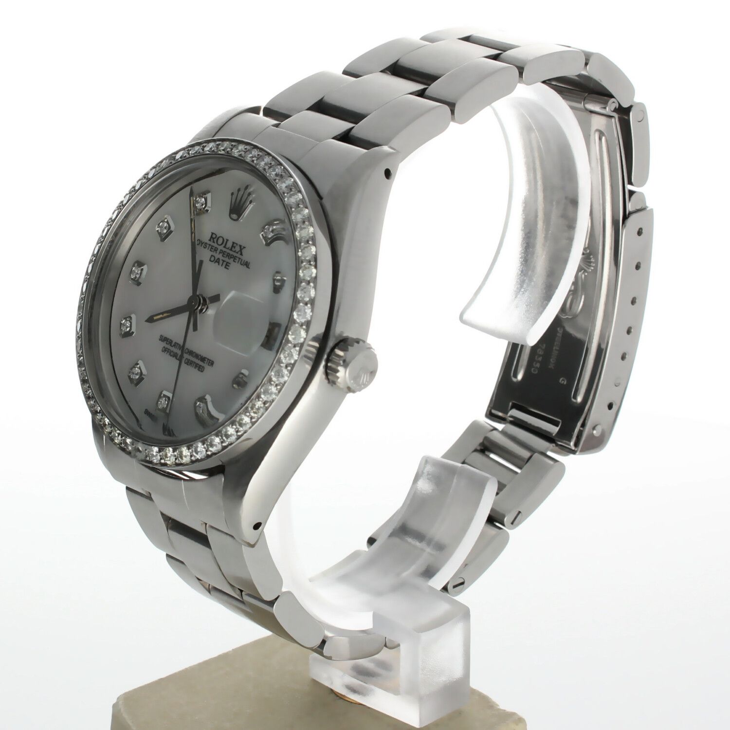 Rolex Date 34 Stainless-steel 6694 Mother-of-Pearl Dial Women's 34-mm Automatic-self-wind Sapphire crystal. Swiss Made Wrist Watch