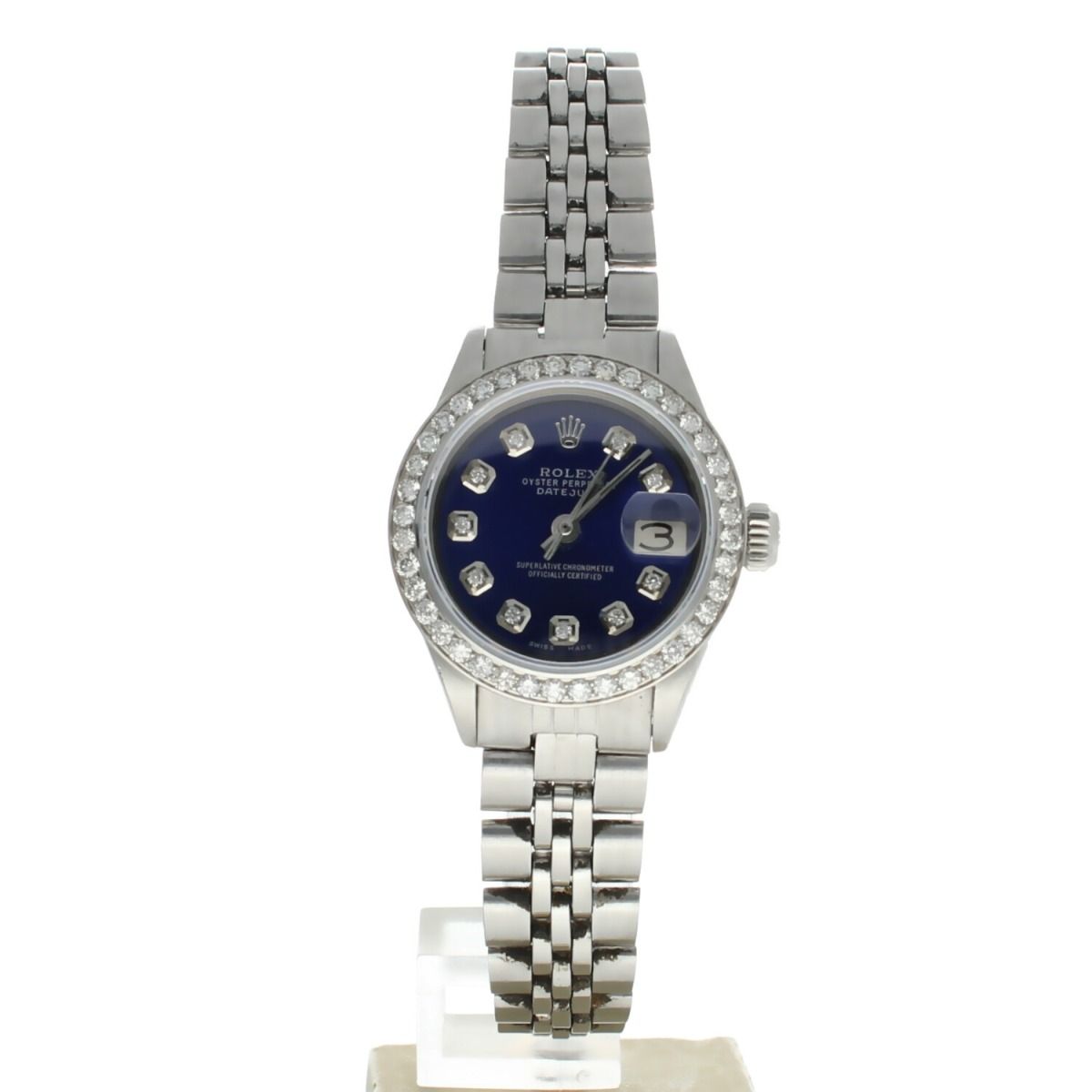Rolex Date Just 26 Stainless-steel 6924 Blue Dial Women 26-mm Automatic-self-wind Sapphire crystal. Swiss Made Wristwatch