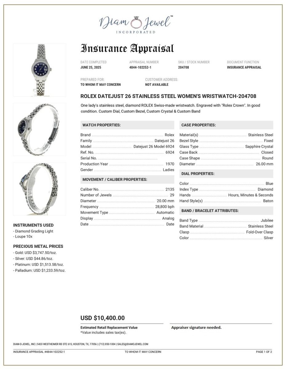 | Additional Information: | Comes with a watch presentation box, 1-year warranty, and an appraisal report for insurance & authenticity. |