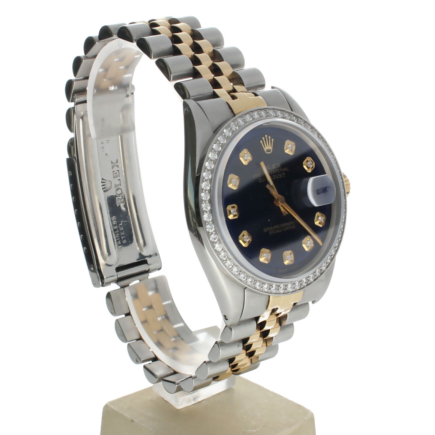 Rolex Date just 36 Stainless-steel 1601 Blue Dial Men's 36-mm Automatic-self-wind Sapphire crystal. Swiss Made Wristwatch