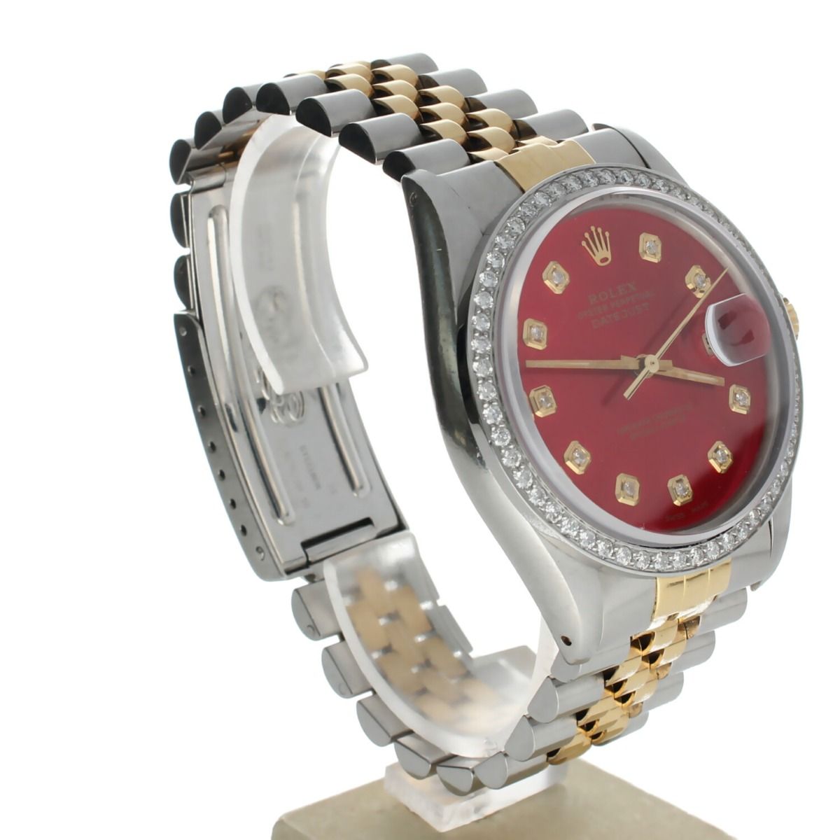 Rolex Date just 36 Stainless-steel 16013 Red Dial Men's 36-mm Automatic-self-wind Sapphire crystal. Swiss-Made Wristwatch