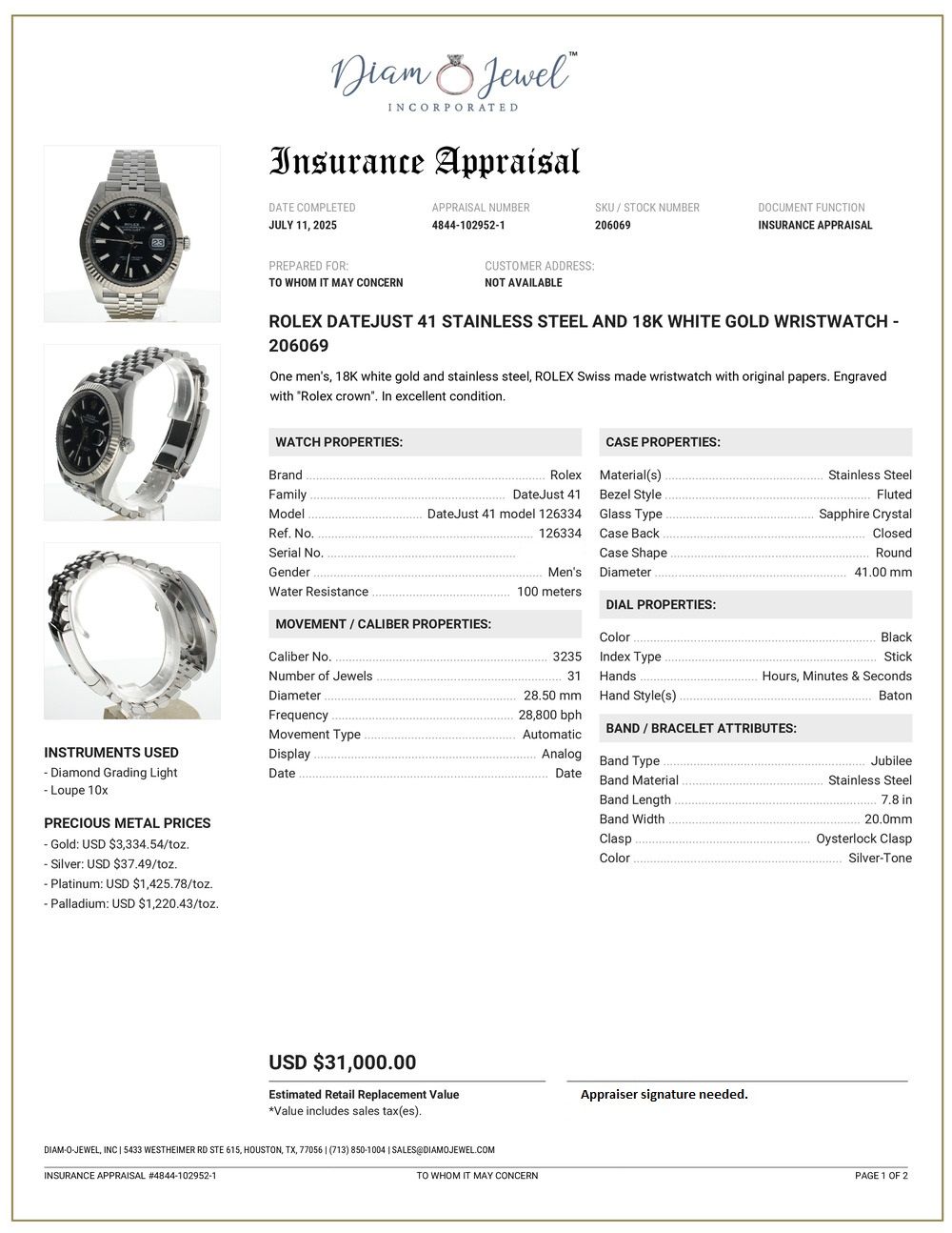 | Additional Information: | Comes with a watch presentation box, 1-year warranty, and an appraisal report for insurance & authenticity. |