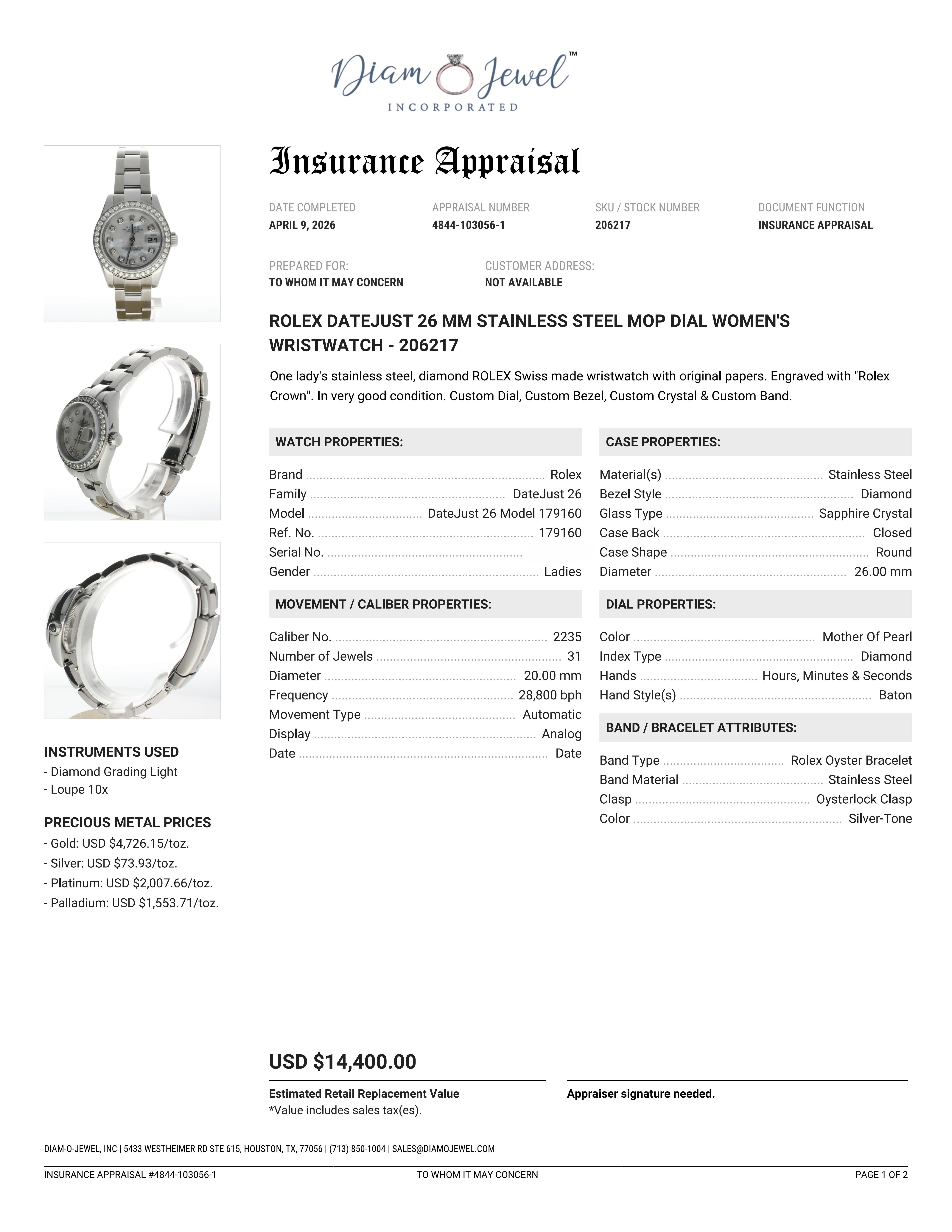 | Additional Information: | Comes with a watch presentation box, 1-year warranty, and an appraisal report for insurance & authenticity. |