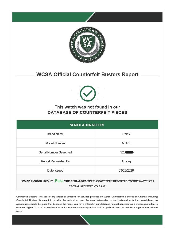 This transferrable limited warranty, which is provided by Amijag, Inc., having its place of business at 6222 Richmond Avenue Suite 690, Houston, TX 77057 (“Amijag”), applies to a watch described on the Amijag.com website, eBay, Amazon or any other marketplace sold under Amijag trade name as “certified, pre-owned”, purchased by you in the continental United States of America, or Alaska or Hawaii, from Amijag directly or any third-party authorized reseller in store or online that is approved to sell certified, pre-owned watches (“Watch”). This limited warranty begins on the date you purchase the Watch and lasts for one (1) year.