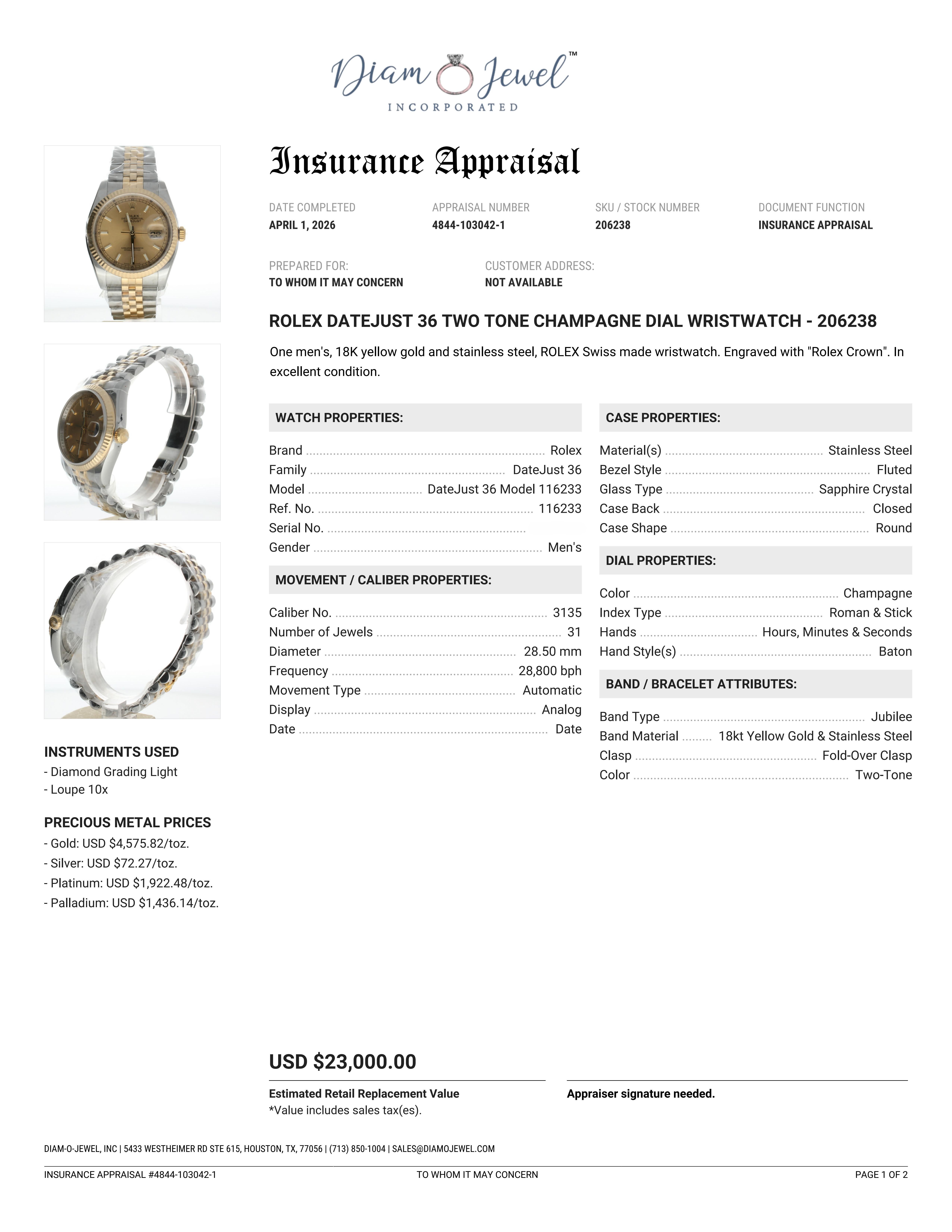 Rolex DateJust 36 Stainless-steel 116233 Champagne Dial Men's 36-mm Automatic Wrist Watch