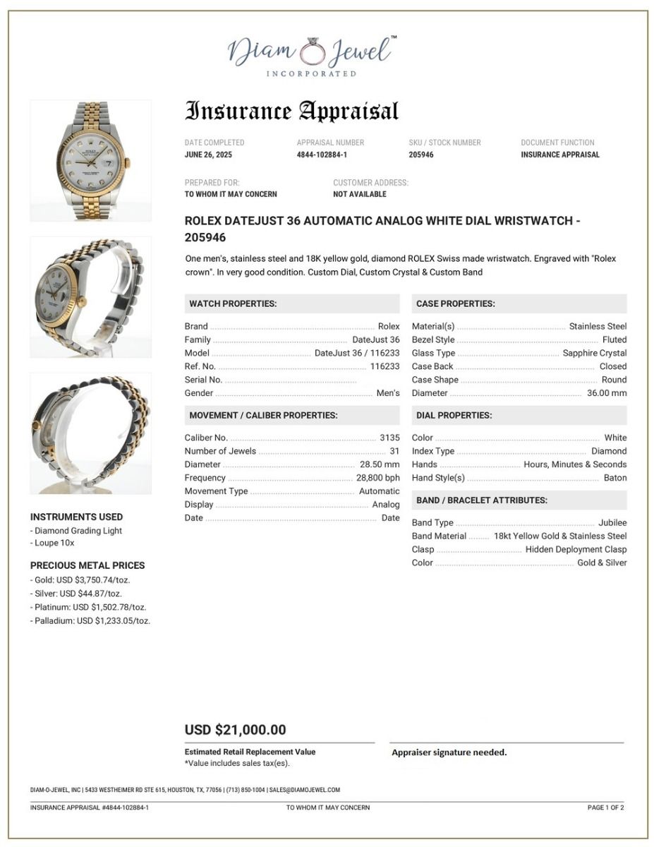 | Additional Information: | Comes with a watch presentation box, 1-year warranty, and an appraisal report for insurance & authenticity. |
