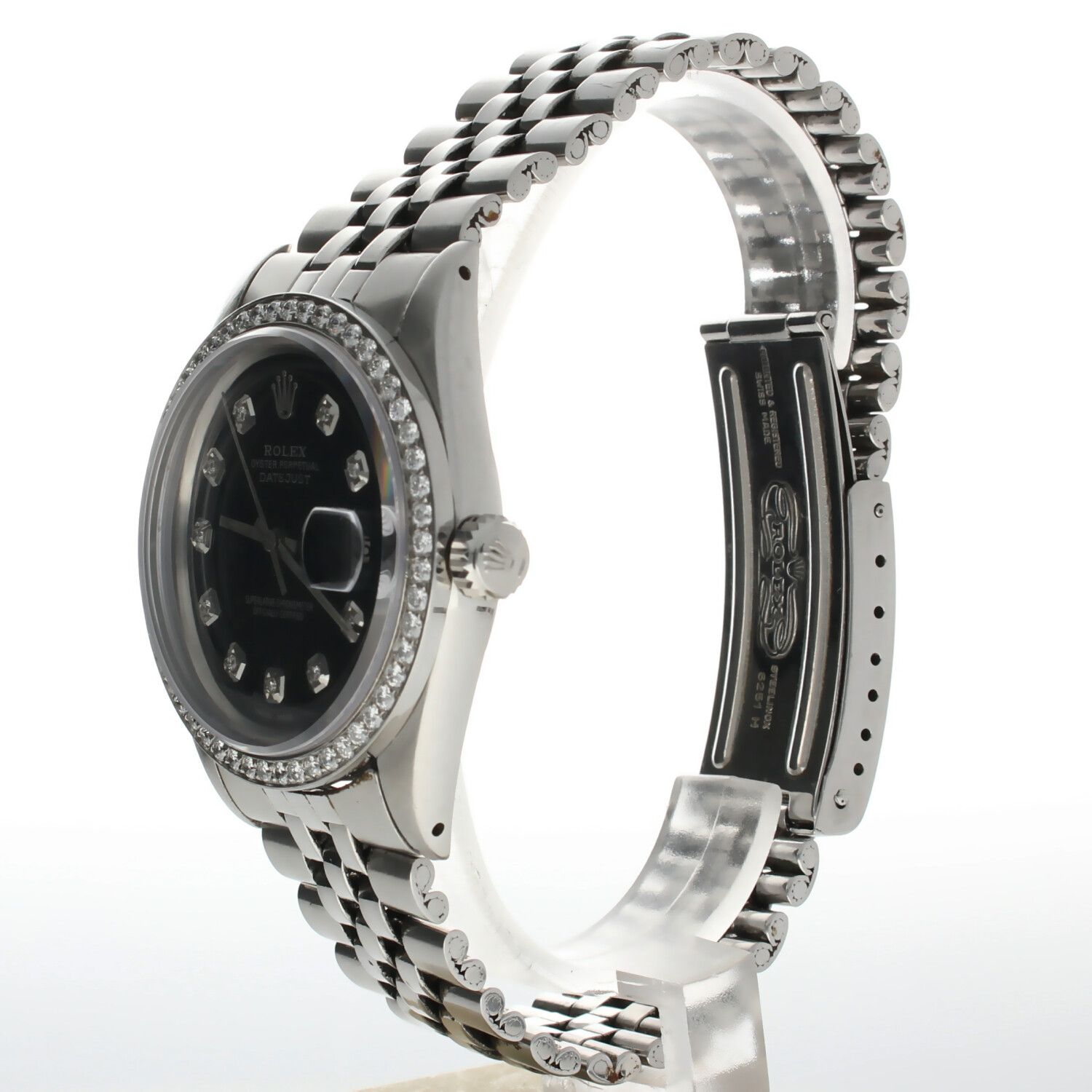 Rolex DateJust 36 Stainless-steel 1601 Black Dial Mens 36-mm Automatic self-wind Sapphire crystal. Swiss Made Wrist Watch