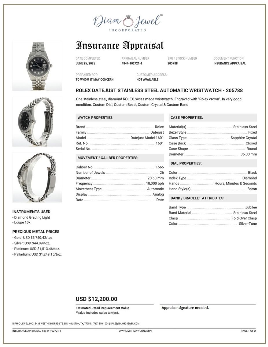 | Additional Information: | Comes with a watch presentation box, 1-year warranty, and an appraisal report for insurance & authenticity. |