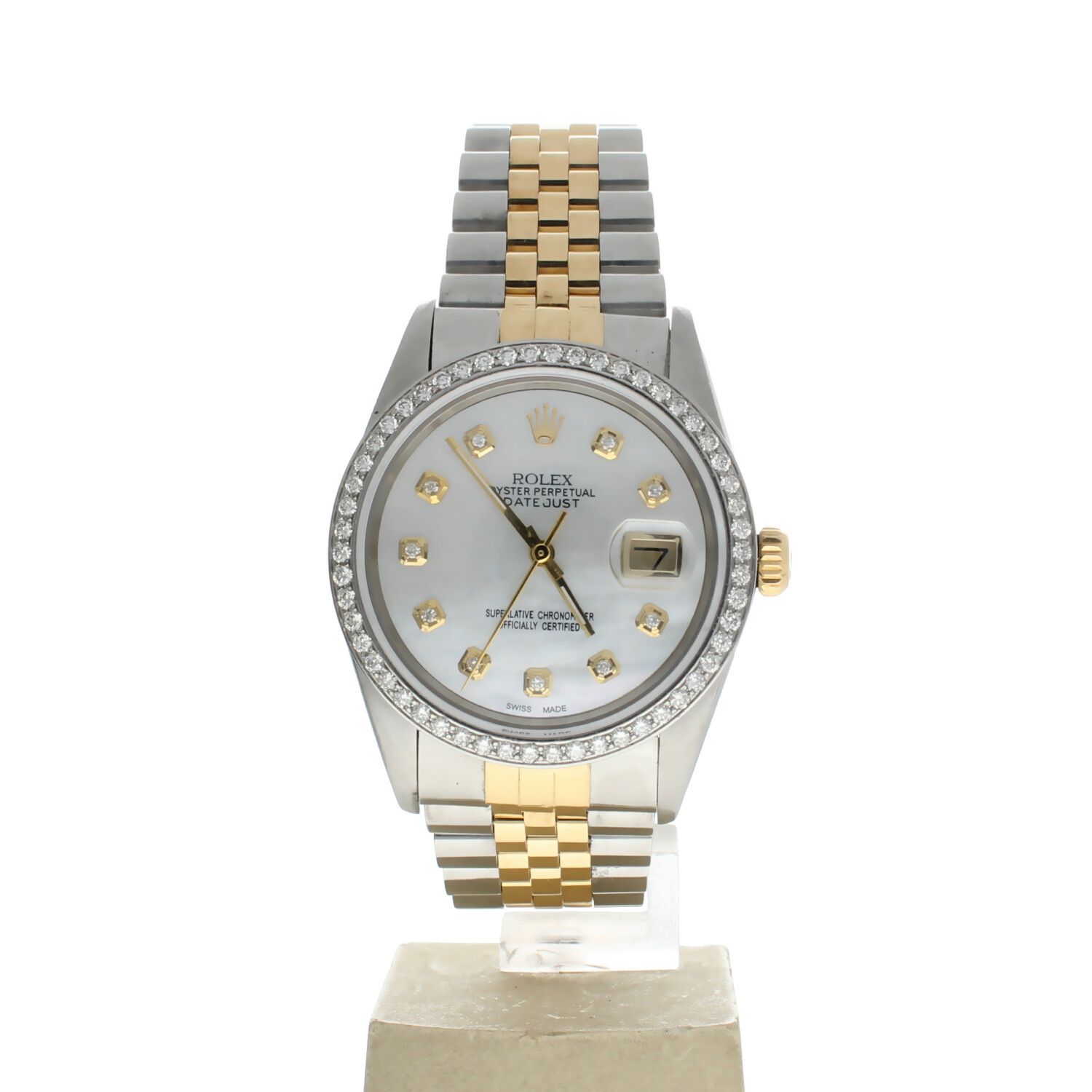 Rolex DateJust 36 Stainless-steel 16013 Mother-of-Pearl Dial Men's 36-mm Automatic self-wind Sapphire crystal. Swiss Made Wristwatch