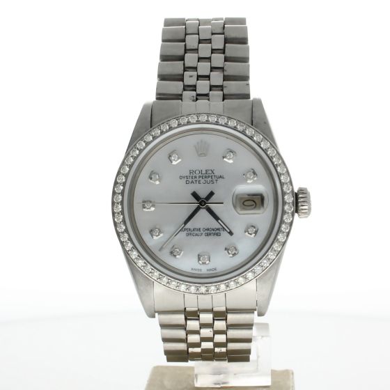 Rolex DateJust 36 Stainless-steel 16030 Mother-of-Pearl Dial Mens 36-mm Automatic self-wind Sapphire crystal. Swiss Made Wrist Watch