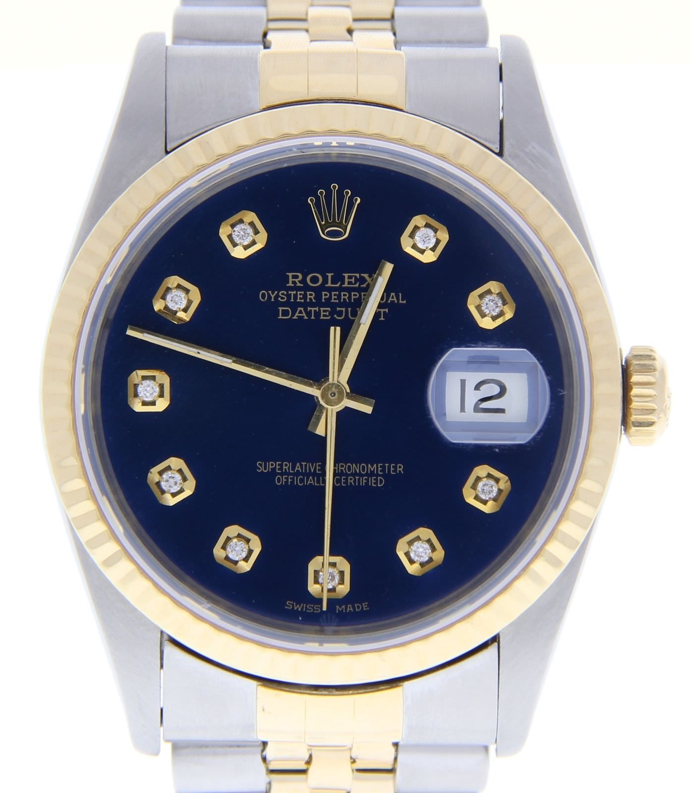 Rolex DateJust 36 Stainless-steel 16233 Blue Dial Mens 36-mm Automatic self-wind Sapphire crystal. Swiss Made WristWatch