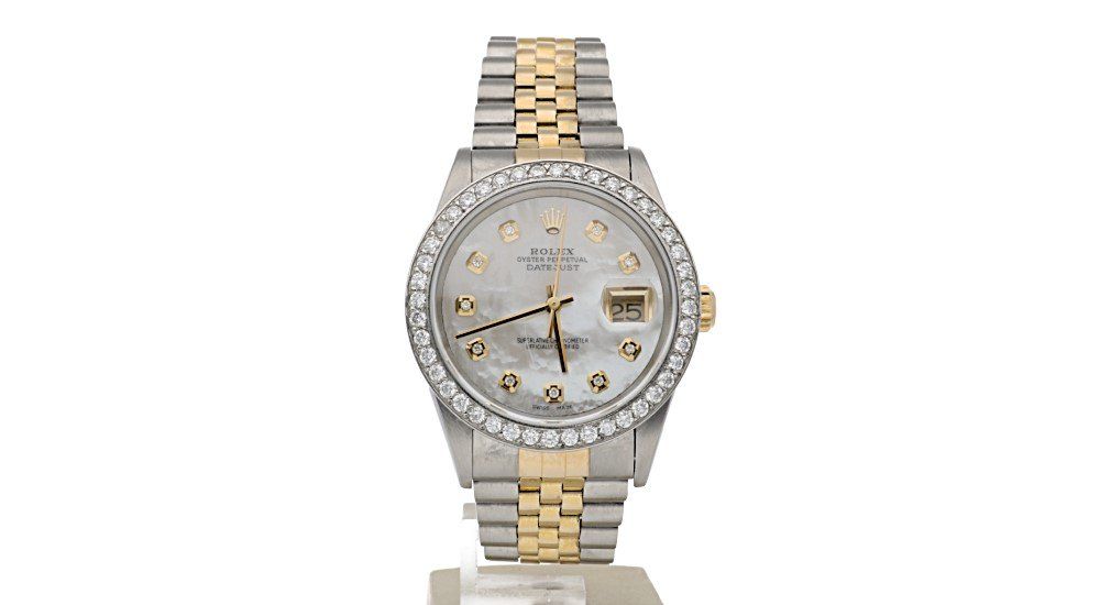 Rolex DateJust 36 Stainless-steel 16233 Mother-of-Pearl Dial Mens 36-mm Automatic self-wind Sapphire crystal. Swiss Made Wrist Watch