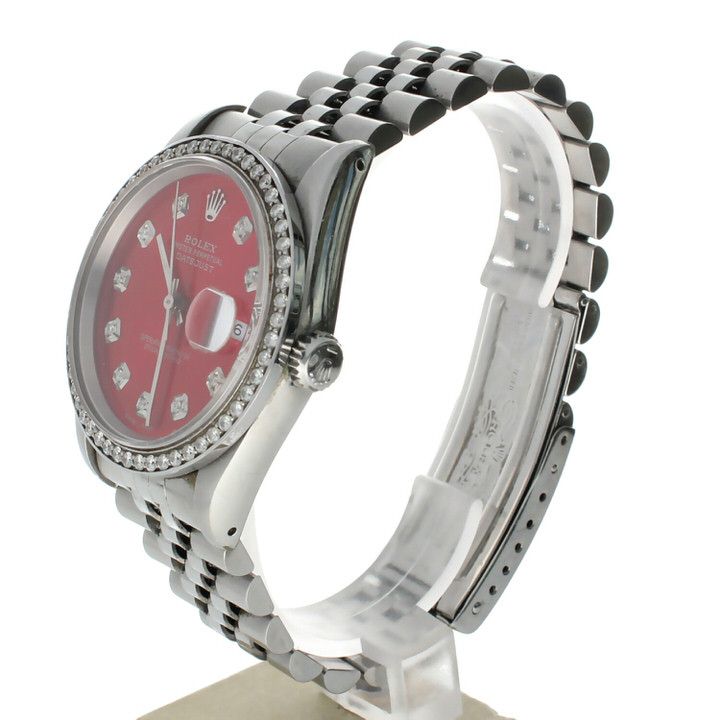 Rolex DateJust 36 Stainless-steel 16234 Red Dial Mens 36-mm Automatic self-wind Sapphire crystal. Swiss Made Wrist Watch