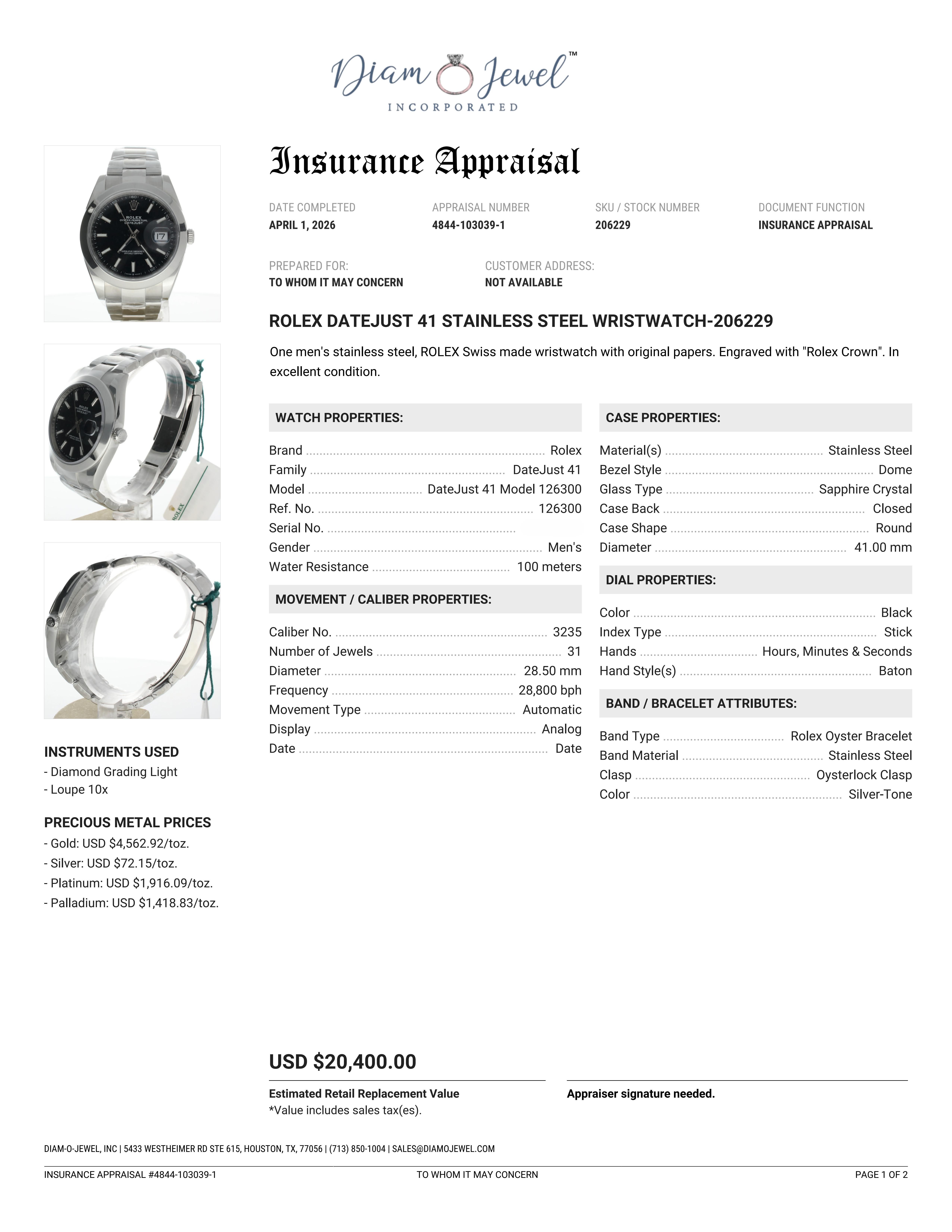 Rolex DateJust 41 Stainless-steel 126300 Black Dial Mens 41-mm Automatic self-wind Sapphire crystal. Swiss Made Wrist Watch