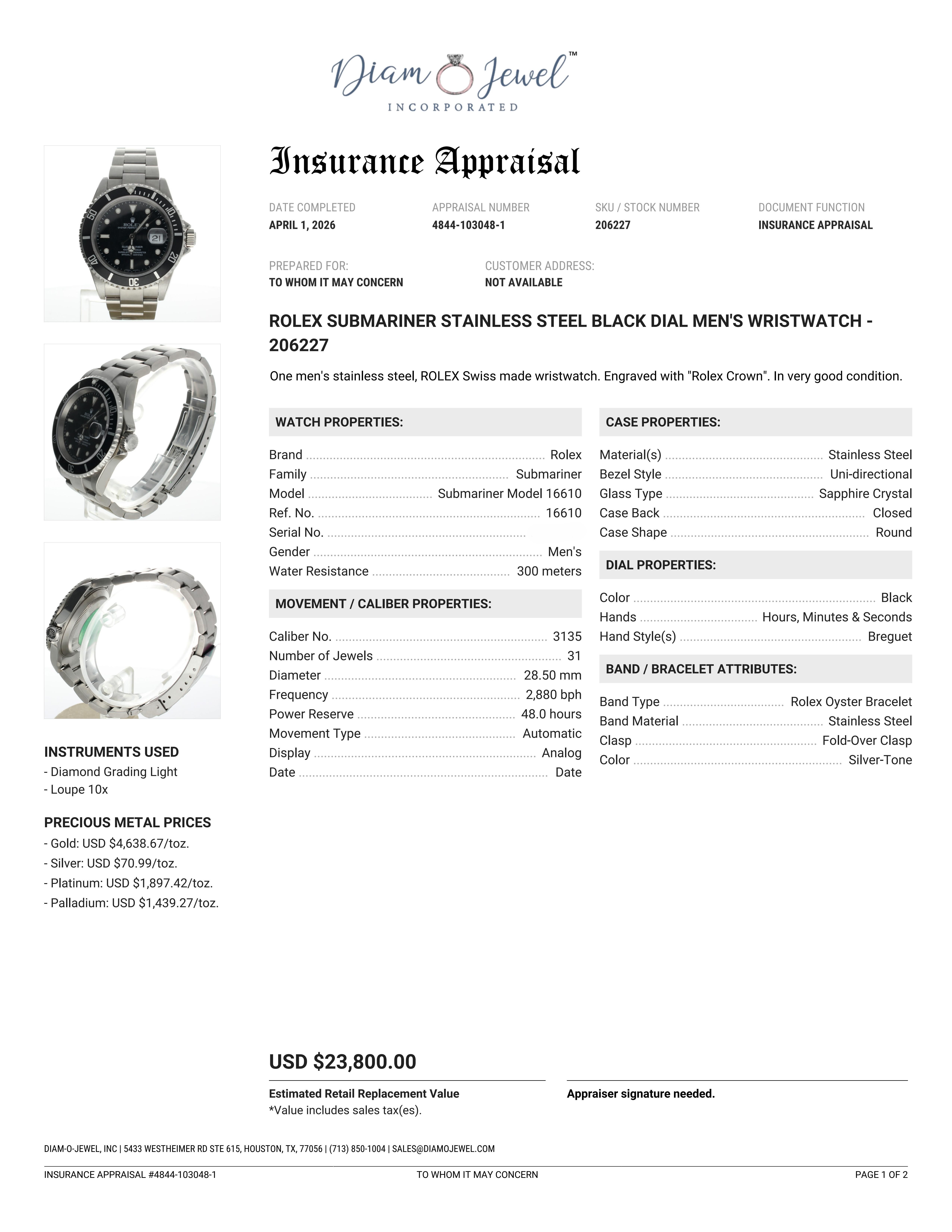 Rolex Submariner Stainless-steel 16610 Black Dial Mens 40-mm Automatic self-wind Sapphire crystal. Swiss Made Wrist Watch