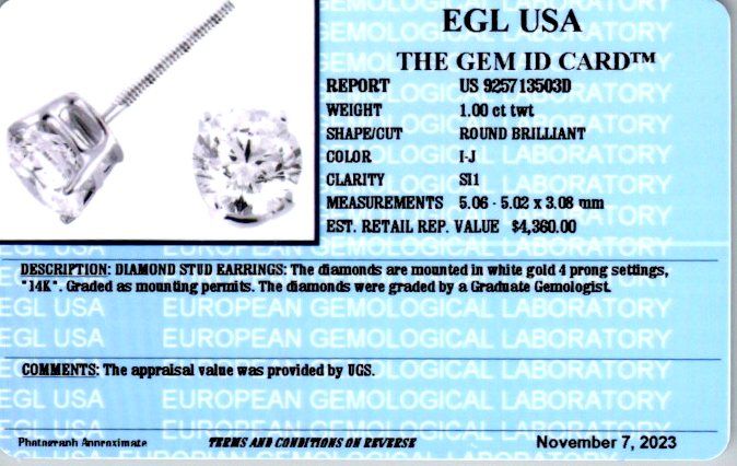 | Details: | Studs-1, Diamond 14k White Gold EGLUS-205432 in White Gold by Amijag |